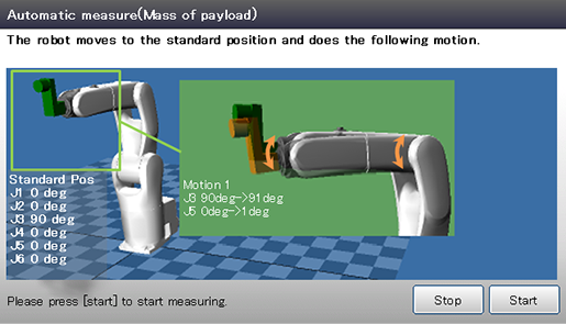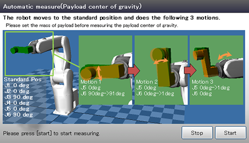 - 进行自动测量时,请按照前端负载质量→负载重心位置的顺序测量。如果顺序不对,可能得不到正确的测量值。