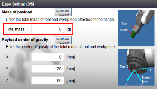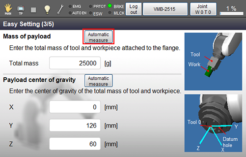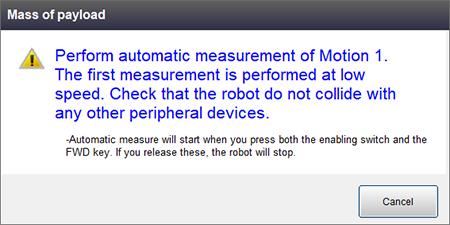 请注意,在自动测量画面中按[Cancel]返回[简单设定] - [前端负载质量]设定画面时不会输入测量值。