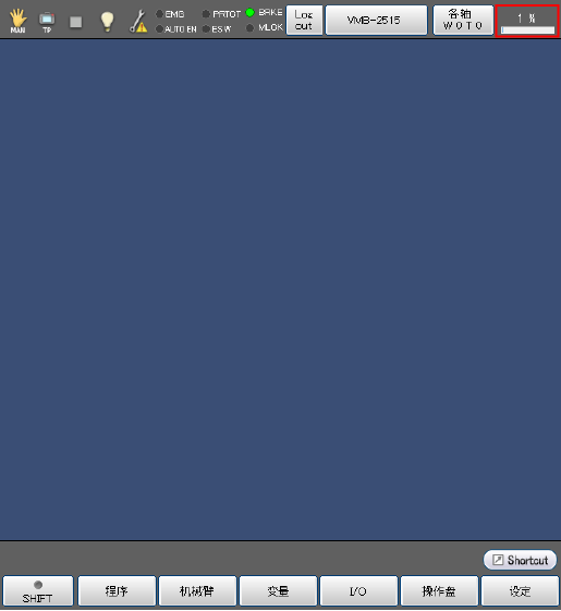 还可通过智能TP修正自动计算出的上述值。此时,最新的修正值生效。 - 外部速度的最小设定允许值是0.1%,与此相对应的外部加速度、外部减速度为0.0001%。当被设定为1%以下的外部速度时,智能TP的状态栏上的栏图表的速度显示为1%。