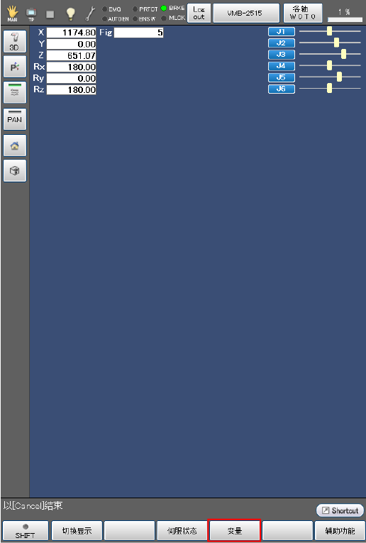 打开变量画面时,在画面下侧显示机器人的机械臂信息,通过按压[机器人]按钮,可取消机械臂信息画面。