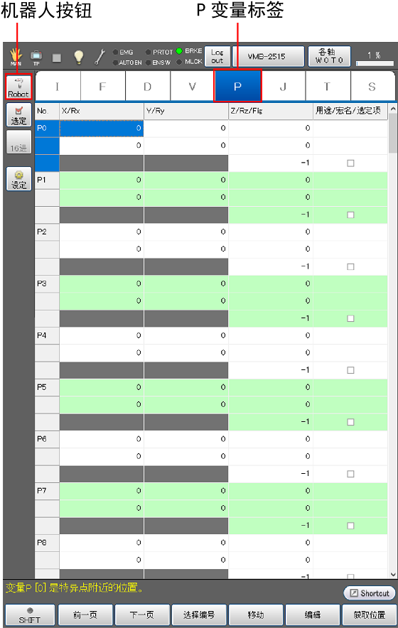 机器人位置(P2)的教导及保存至[变量名 P2]