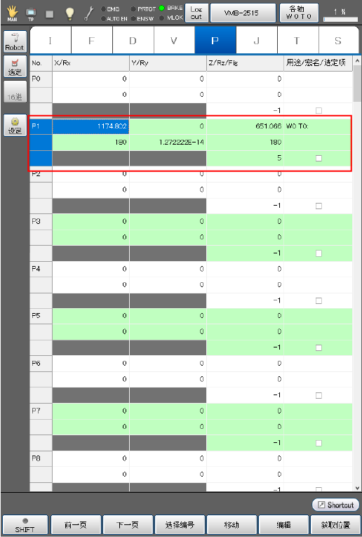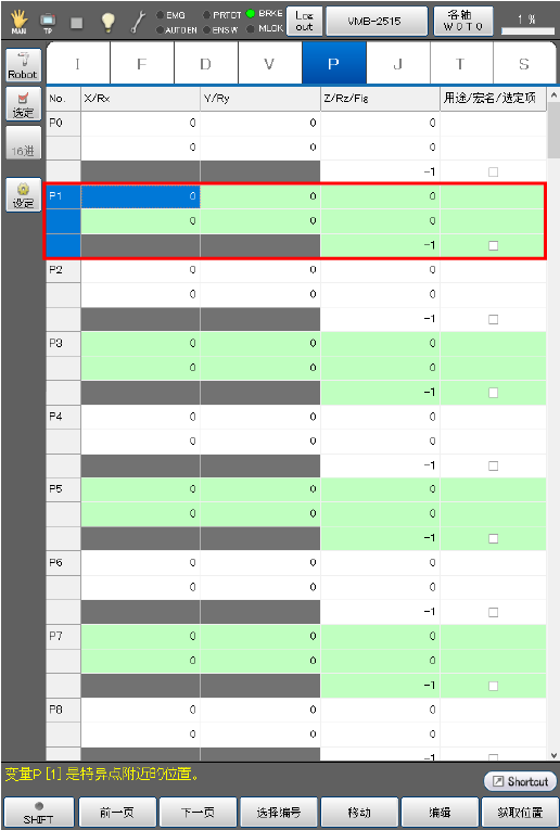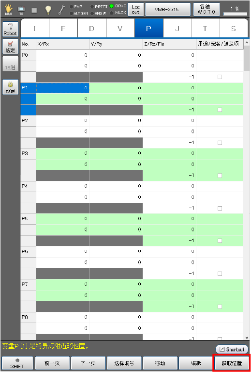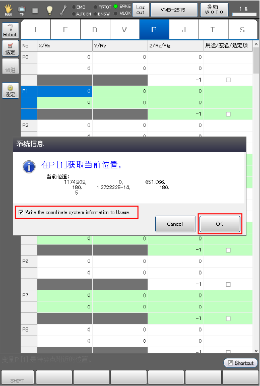 按照和P1相同的步骤,将机器人的当前值保存至变量名“ P2”。