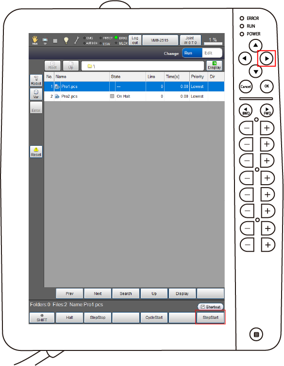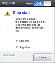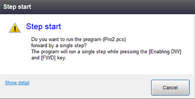 显示以下讯息后,一边按压允许开关一边按压[FWD]键。请持续按压允许开关与[FWD]键两个按钮,直到程序的执行完成。