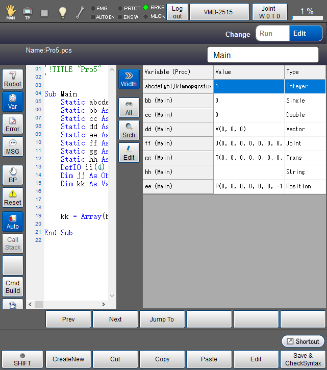 编辑变量。 为排列时,显示排列中的要素。 关于Variant排列,请参照“Variant排列的监视”。 |