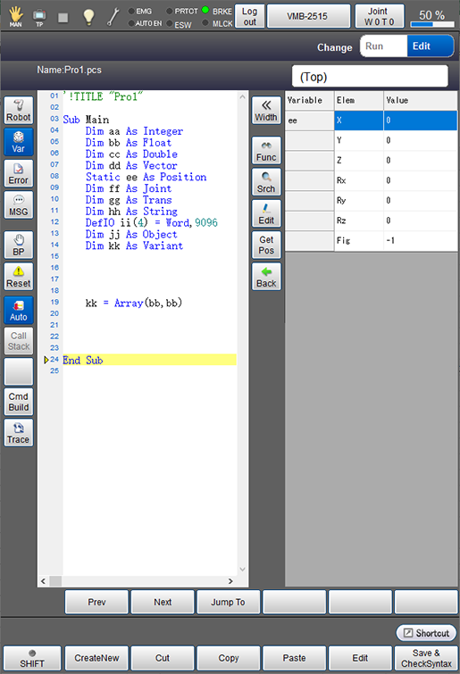 在P型、J型、T型的变量中登录当前位置。 按下该按钮后显示获取确认画面,因此按[OK]。中止时,按[Cancel]。 该按钮只可在变量中登录当前位置时显示。 |