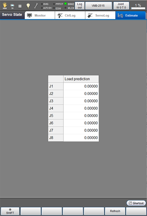 使用控制LOG的结果,显示1轴至8轴各轴的预计负载率。
