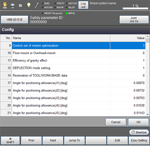 操作路径:[F2 机械臂]-[F6 辅助功能]-[F1 使用条件]