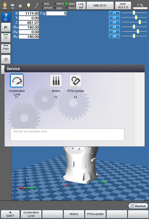 | [F3 动作] | 设定手臂前端限制速度的设定(手动动作时的最大速度)。 |