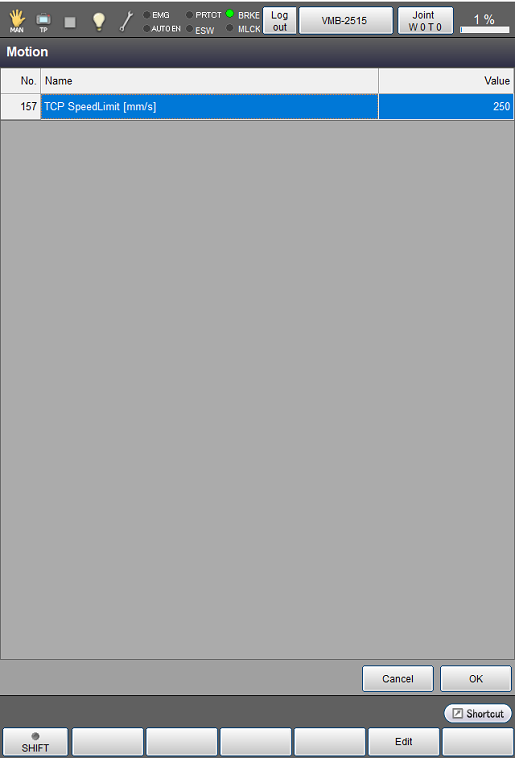 设定手臂前端限制速度的设定(手动动作时的最大速度)。