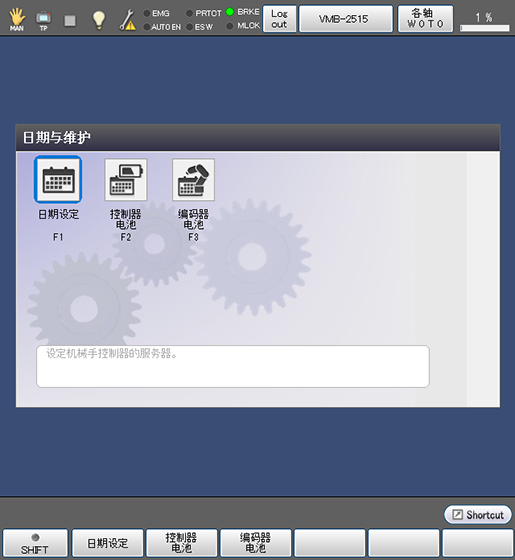 | [F2 控制器电池] | 设定下次控制器电池检查日期设定画面的显示和变更检查日期。 |