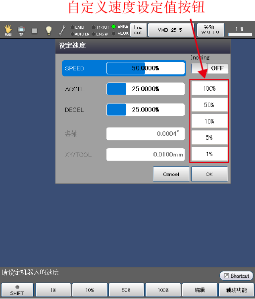 可利用如下几种方法变更值。变更值后,按压[设定速度]视窗中的[OK],即可确定变更。