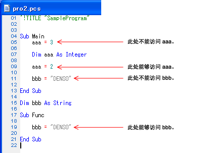 程序从上面的行开始进行处理。如果在局部变量定义的上一行,则无法访问该局部变量。