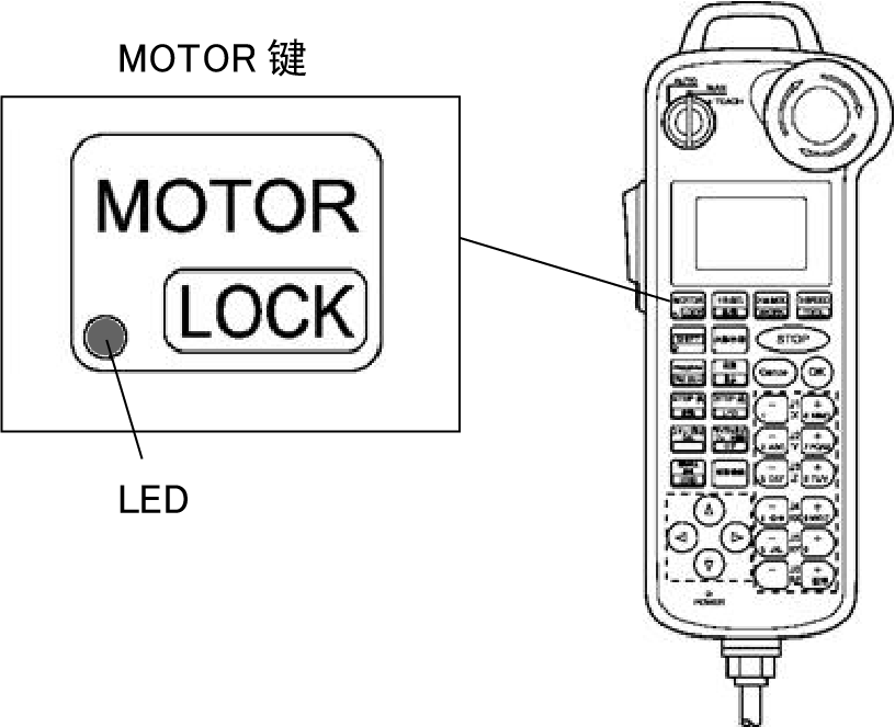 电机电源变成OFF时,[MOTOR]键的LED熄灭。