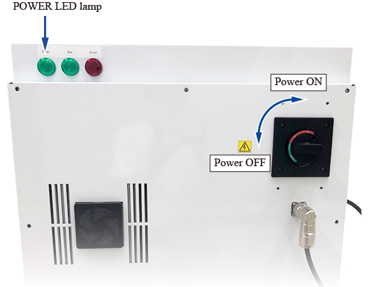 在电源接通状态下,下图中的POWER LED指示灯(3个状态显示LED的最左侧)亮灯。如果切断电源,则POWER LED灯熄灭。