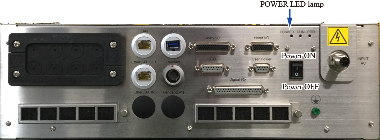 切断机器人控制器的电源后再次接通电源时,请在机器人控制器的POWER LED指示灯完全消失之后,“等待1分钟以上”再进行。