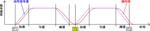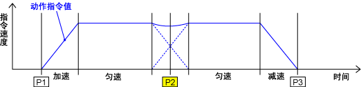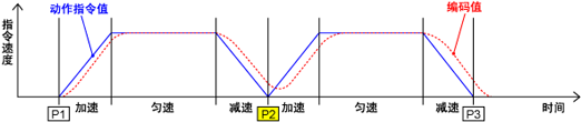 动作指令值(电机命令波形图)达到P2时,开始向P3移动。