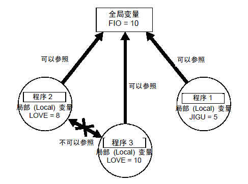 局部变量为仅在一个程序中有效的变量。由于分别在各自所属的程序中运行,因此,即使同时执行的其它程序中存在同名的局部变量,也不会相互影响。任务结束后将清除数值。