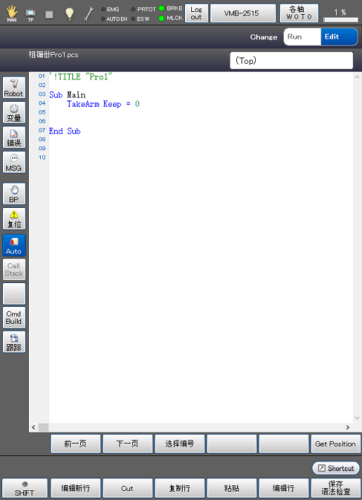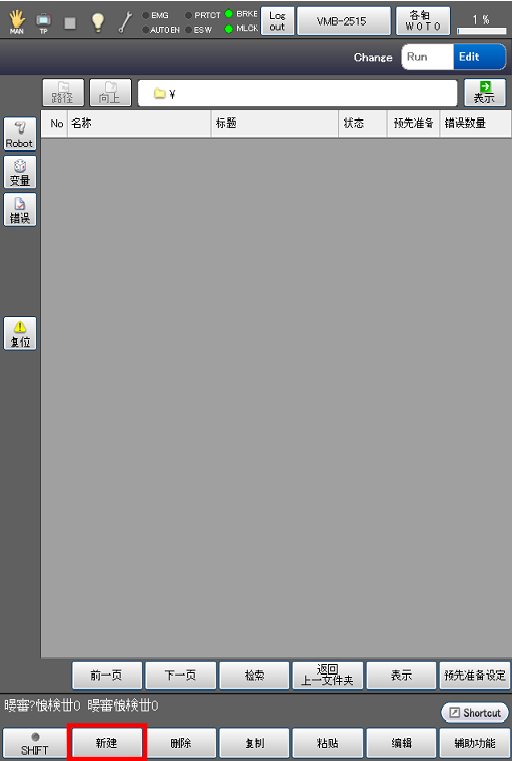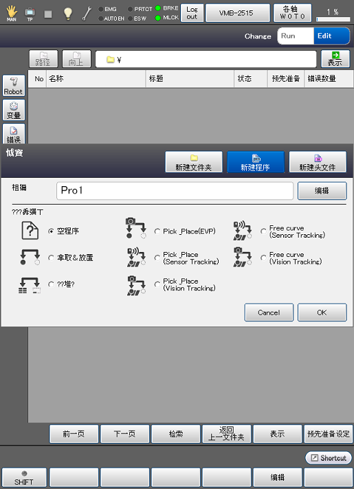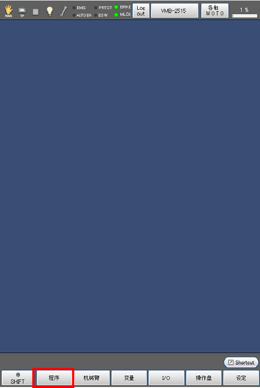 输入程序前,确认智能TP处于手动模式。 在智能TP的画面中打开用于编辑程序的画面,以输入新程序。