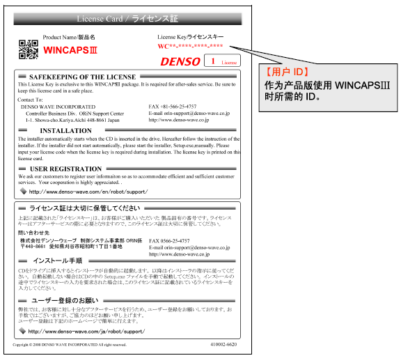 产品版WINCAPSIII中同箱包装有许可证。Light版和Trial版的许可证印刷在CD的标签面。