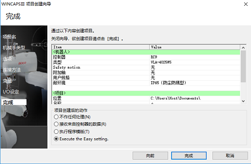 如果设定内容正确则单击[完成],结束向导。