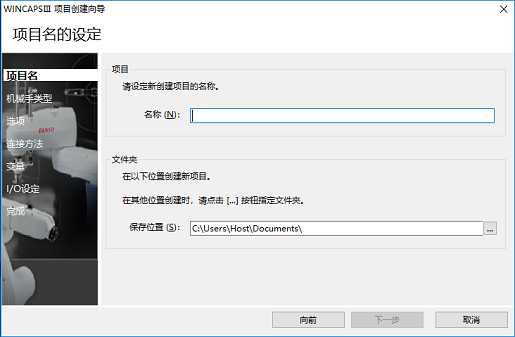 在此,作为基本操作的说明,根据[选择机器人类型后新建]创建项目。