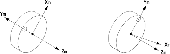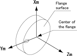 机械界面坐标系的X轴表示为Xm、Y轴为Ym、Z轴为Zm。