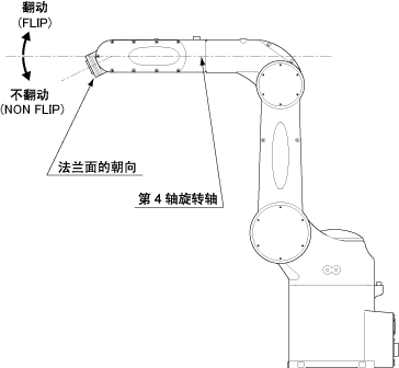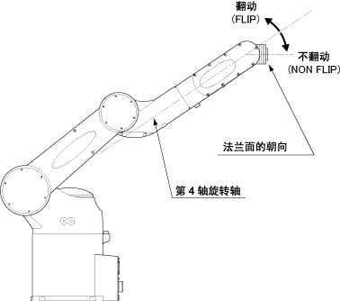以第4轴的旋转轴中心线为基准,法兰面的朝向位于上侧时是翻动,而位于下侧时是不翻动。