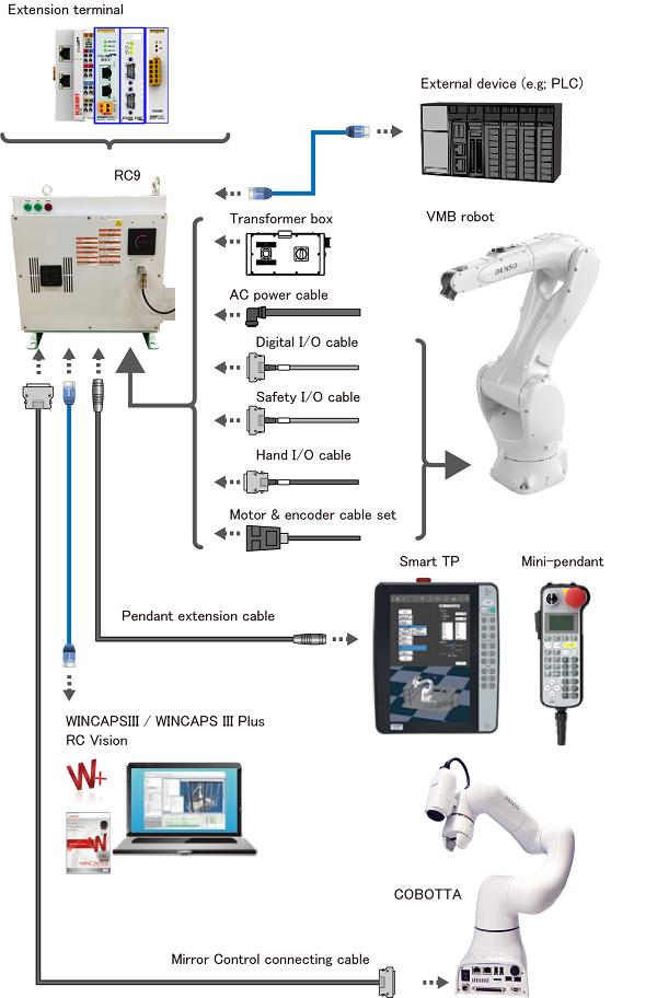 - 搭载机器人控制所需功能及高速处理性能的机器人控制器。固件也可提供RC9。