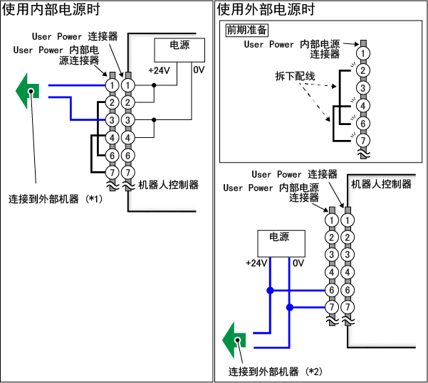 - User Power 内部电源连接器的配线方法