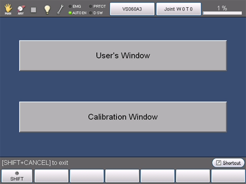 The following calibration screen is provided. It can be used for three-point teach calibration work.
