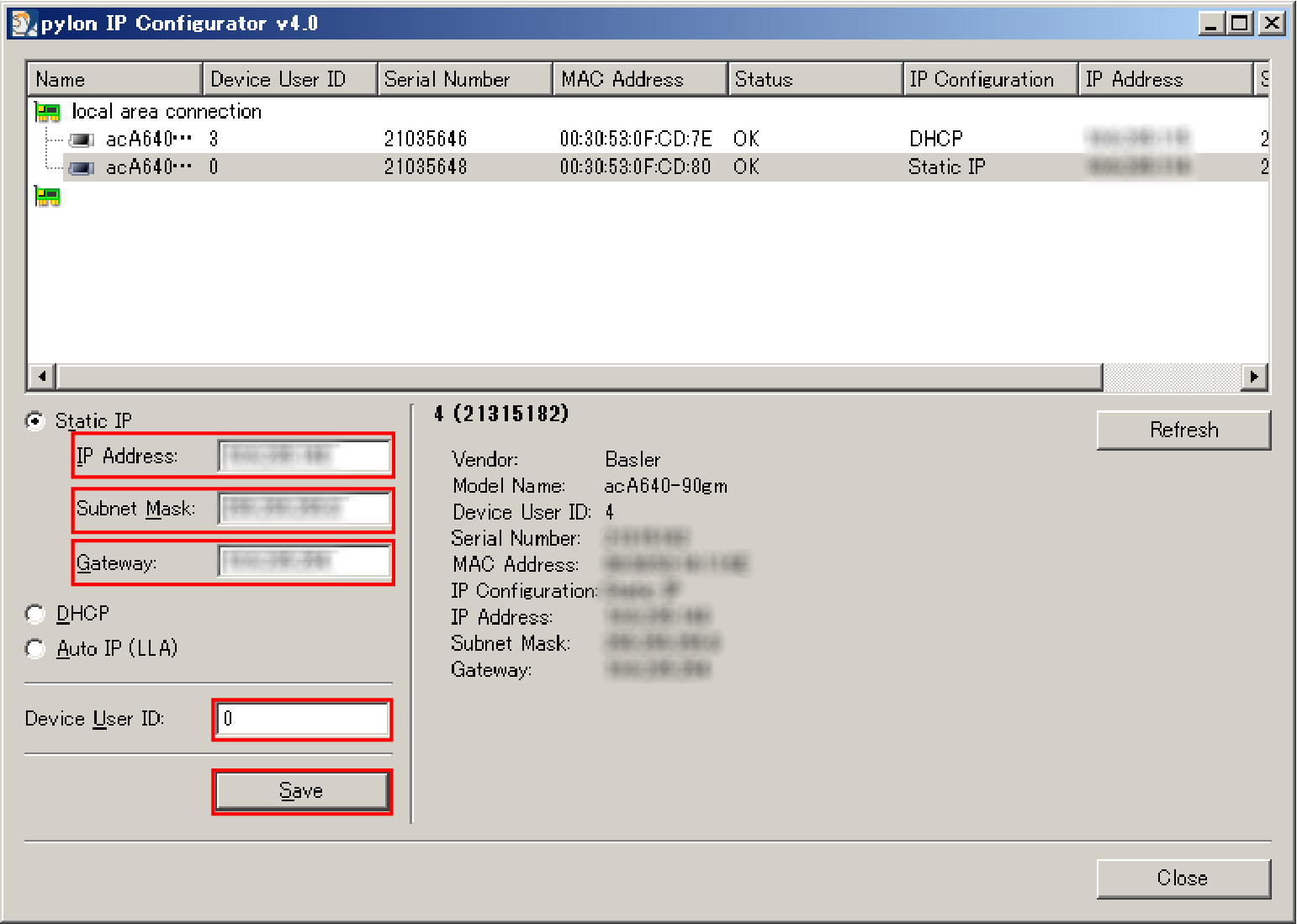 Set IP address, ID and a trigger mode with the pylon IP Configurator.