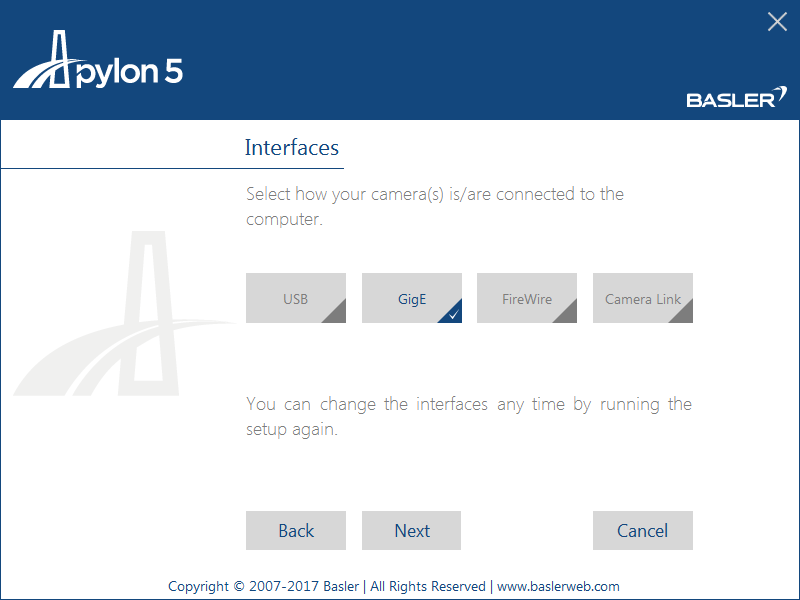 This section describes the setting for connecting a Basler camera using ORiN or RCVision on a computer on which Pylon5 has been installed.