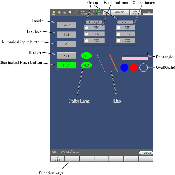 The following table lists the 14 part types available for building TP panel screen software.