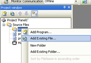 [Select Project (&P)] - [Import program (&I)...], or right-click a folder and select [Import program].