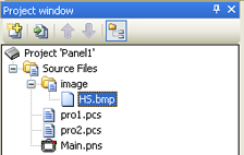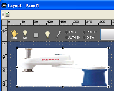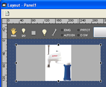 To place an image on the panel screen, designate a BitMap file at Picture property in label control.