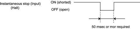 Input this signal (Halt) to instantaneously stop the running programs from an external device. All tasks will stop.