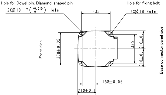 固定时请务必使用定位销和菱形销钉或基准面进行定位。维护作业时等情况下,拆错位机器人本体时,可将位置偏移限定在最小范围内。