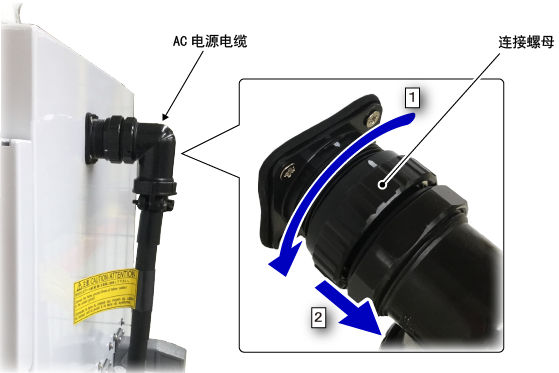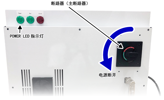 逆时针旋转断路器(主断路器),确认POWER LED熄灭。