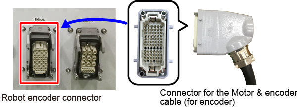 确保本体之间电缆(编码器用)的连接器和机器人编码器连接器的左右朝向一致。