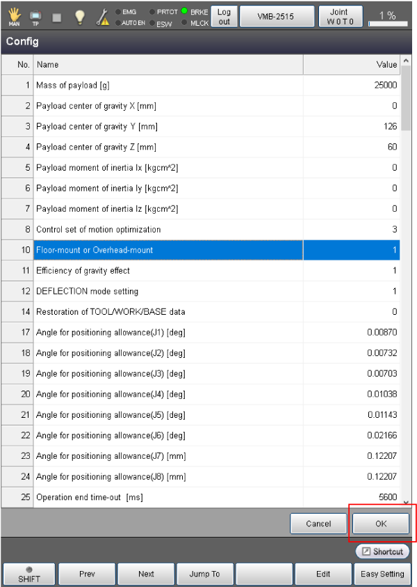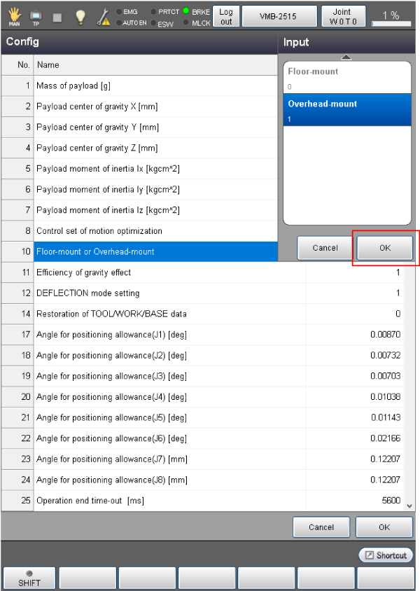 操作路径 : [F2 机械臂]-[F6 辅助功能]-[F1 使用条件]