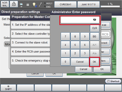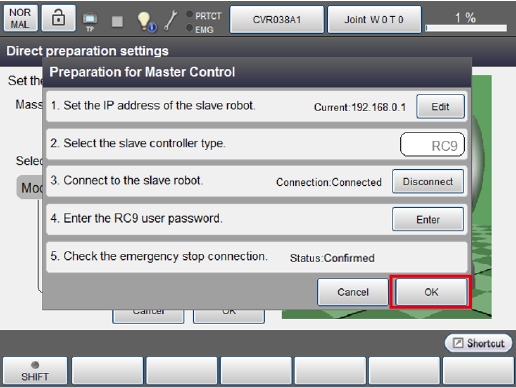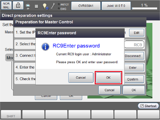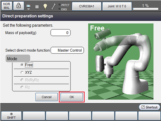 In the the direct preparation setting window, select [Select direct mode function] and change to "Master control".
