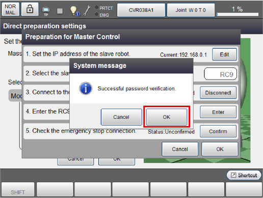 Press 5:[Confirm] and check the connection status of the emergency stop.