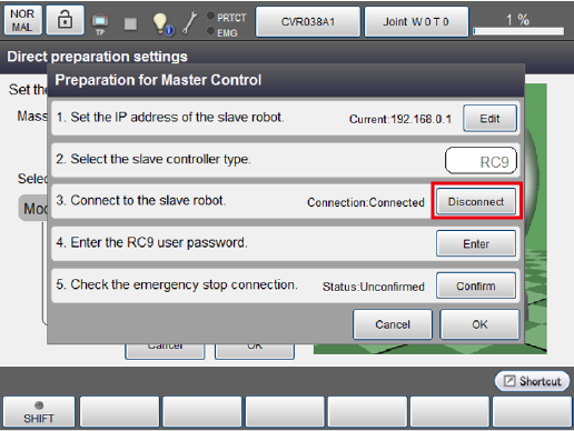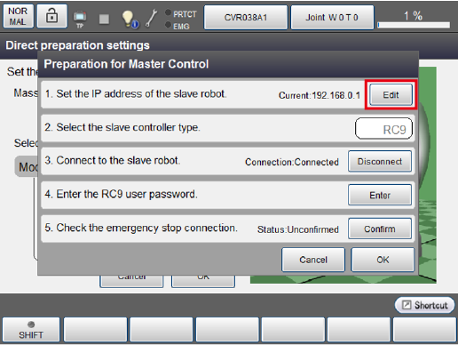 Press 1:[Edit] and enter the IP address of the slave robot.