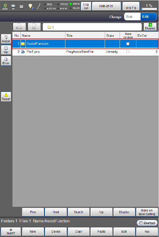 Press the [AssistFunction] folder in the Program list window.