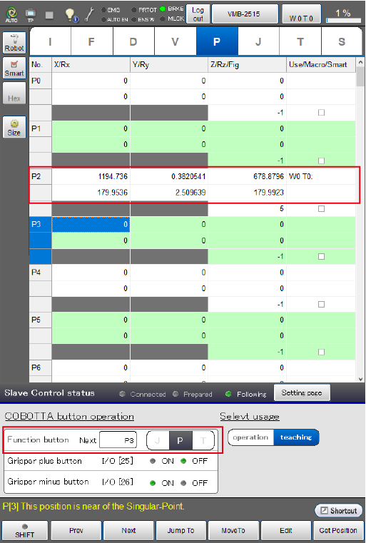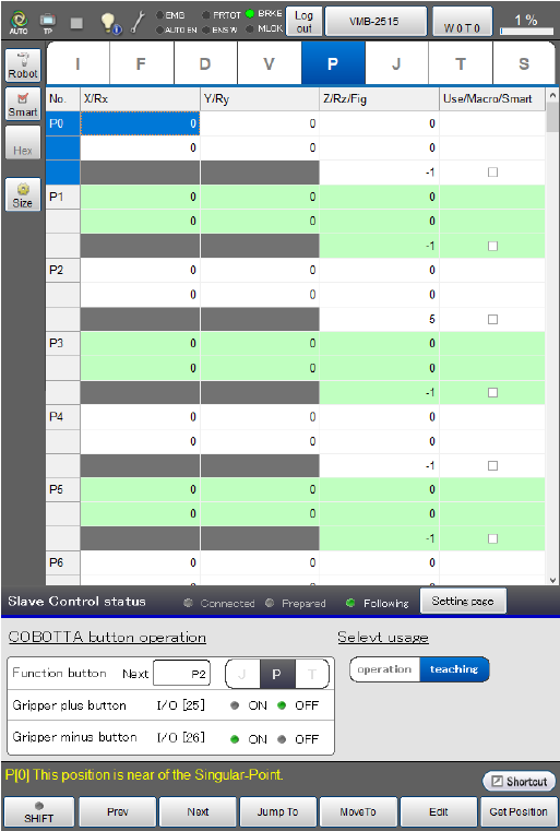 When pressing the function button of COBOTTA, the current position is read into the variable number of the specified variable type.