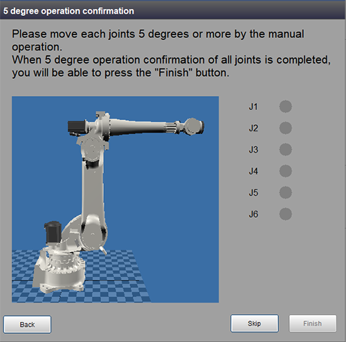 显示确认哪一个轴已完成动作确认的画面。显示该画面时,通过手动操作移动机器人的各轴。
