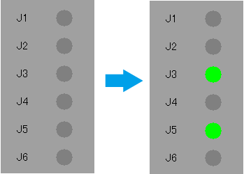 完成5度以上动作的轴指示灯从灰色变成绿色。