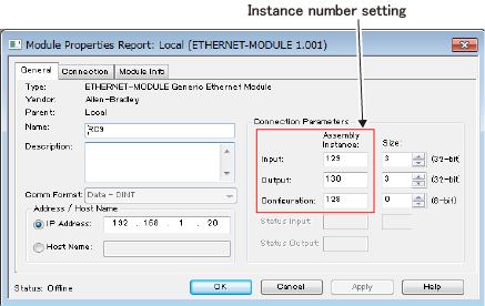 If you perform master configuration without using EDS file of EtherNet/IP slave terminal, you need to set the instance number. Enter the following numbers.