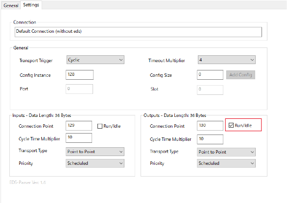 Select the checkbox of “Run/Idle” of output (input for RC9). Input (output for RC9) is not necessary.