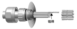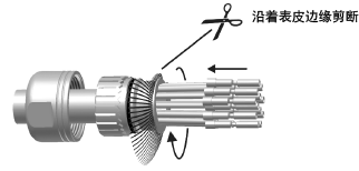 说明电缆连接至X90用连接器的连接方法。按照下图的步骤进行。